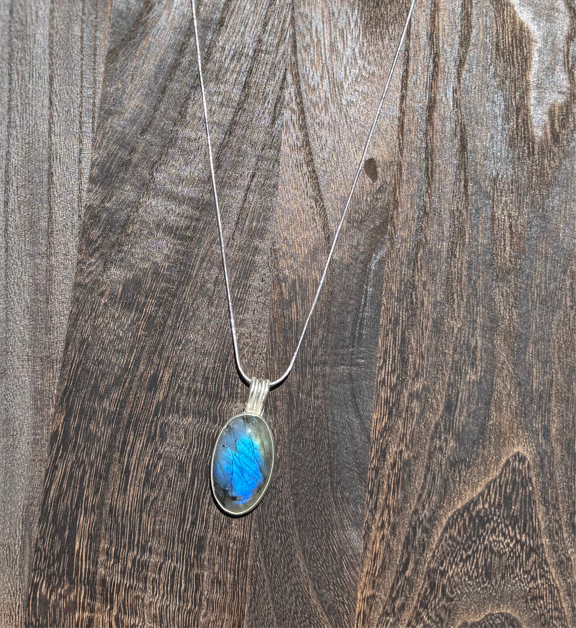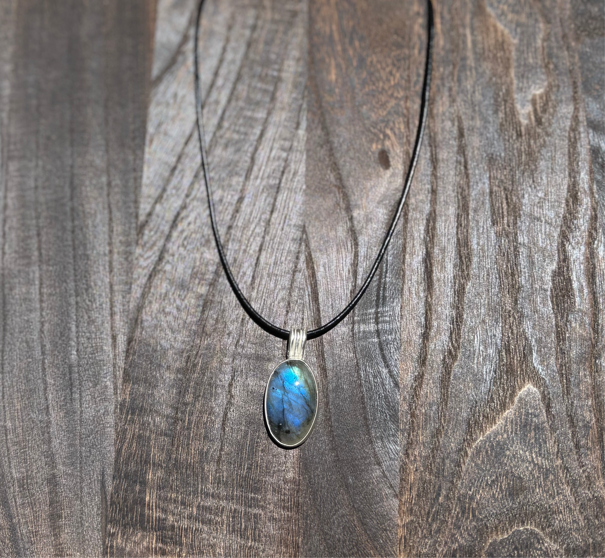 This labradorite pendant comes with an 18 inch silver chain, or the option of a black leather chain 18 inches ( the hardware on the back leather isn’t sterling silver) Also if you want the black leather necklace! Send me a message!